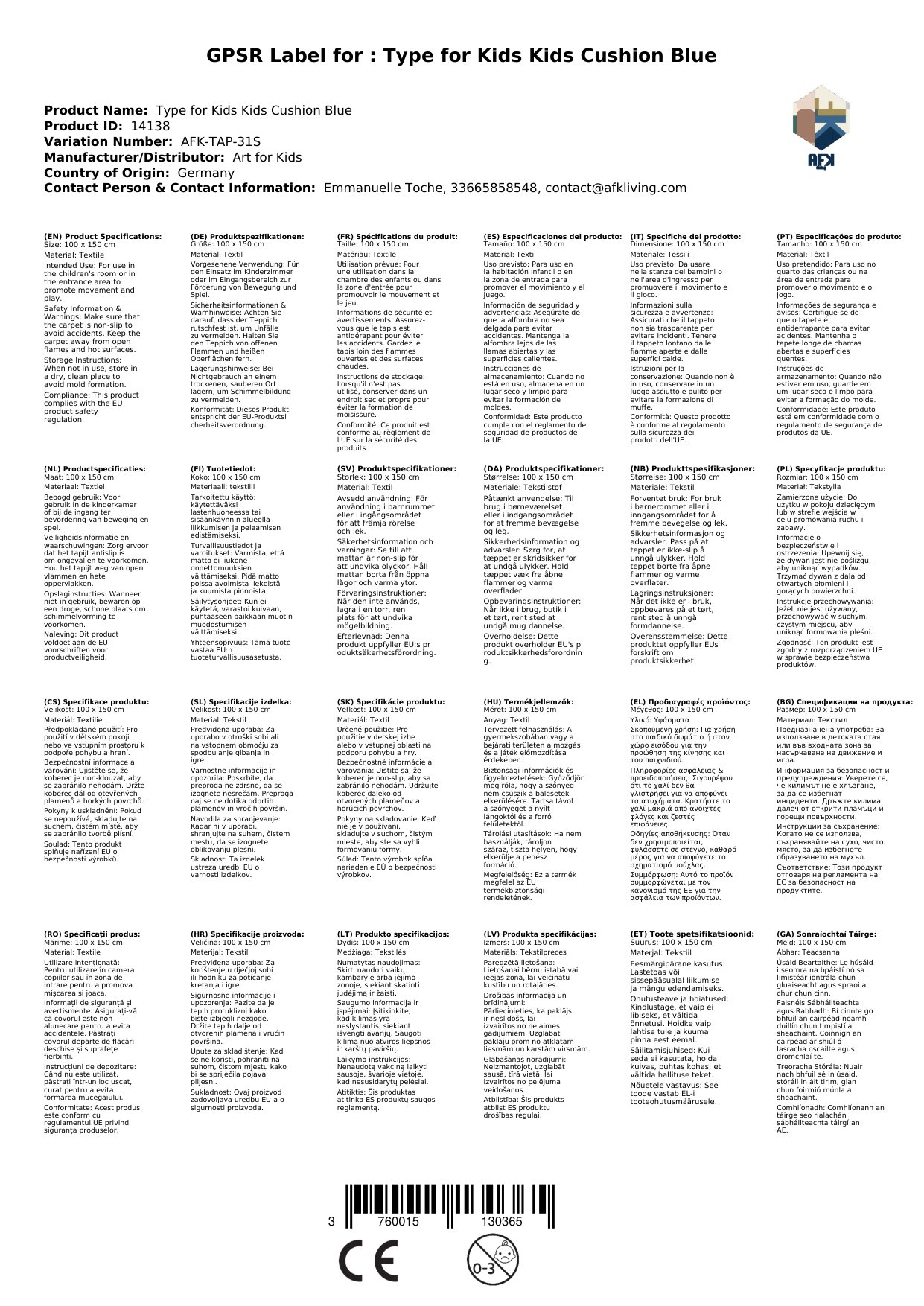 Art for Kids achtet streng darauf, dass nur Materialien verwendet werden, die die Anforderungen des Oeko Tex 100 Zertifikats erfüllen und von Textiles Vertrauen geprüft sind. So ist gewährleistet, dass die Teppiche schadstoffgeprüft sind.