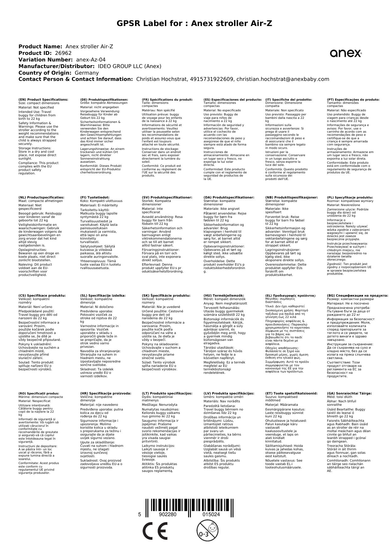 Stellen Sie eine Frage, um mehr über das Produkt zu erfahrenAnex Kinderwagen Air-Z