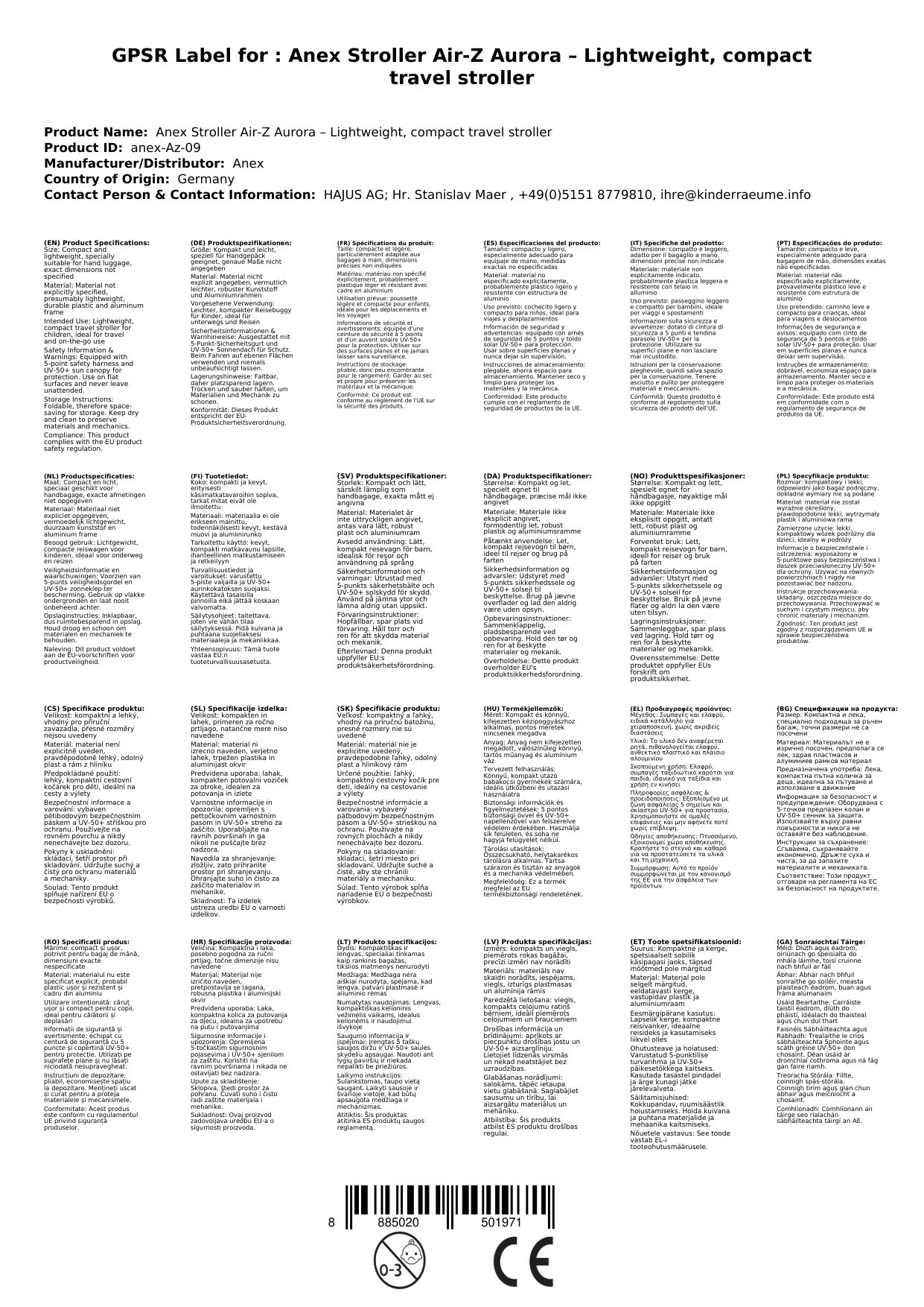 Stellen Sie eine Frage, um mehr über das Produkt zu erfahrenAnex Kinderwagen Air-Z Aurora, leichter kompakter Reisebuggy mit Liegefunktion, faltbar, UV-Schutz, Federung, Handgepäck, kinderwagen, buggy