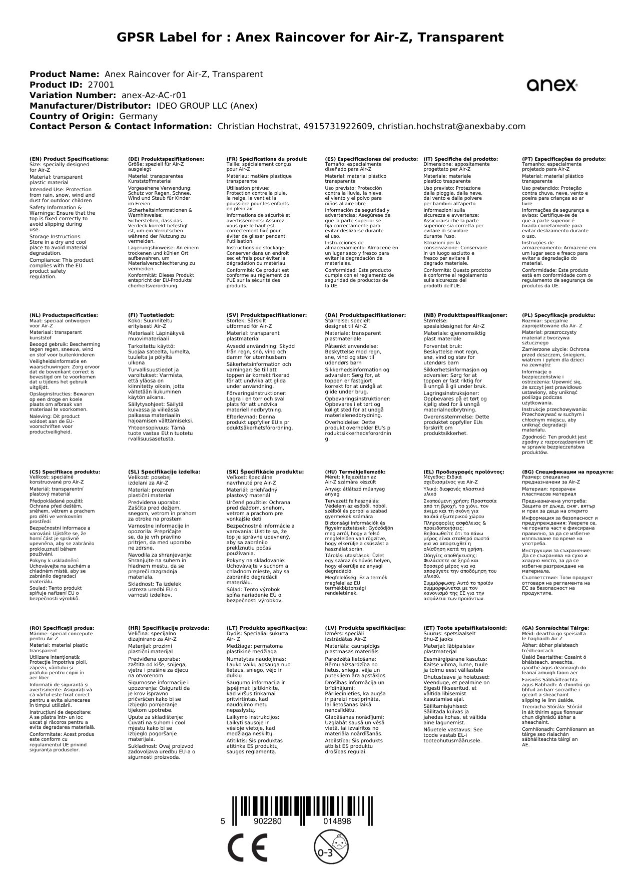 - Transparentes Verdeck für Anex Air-Z Kinderwagen