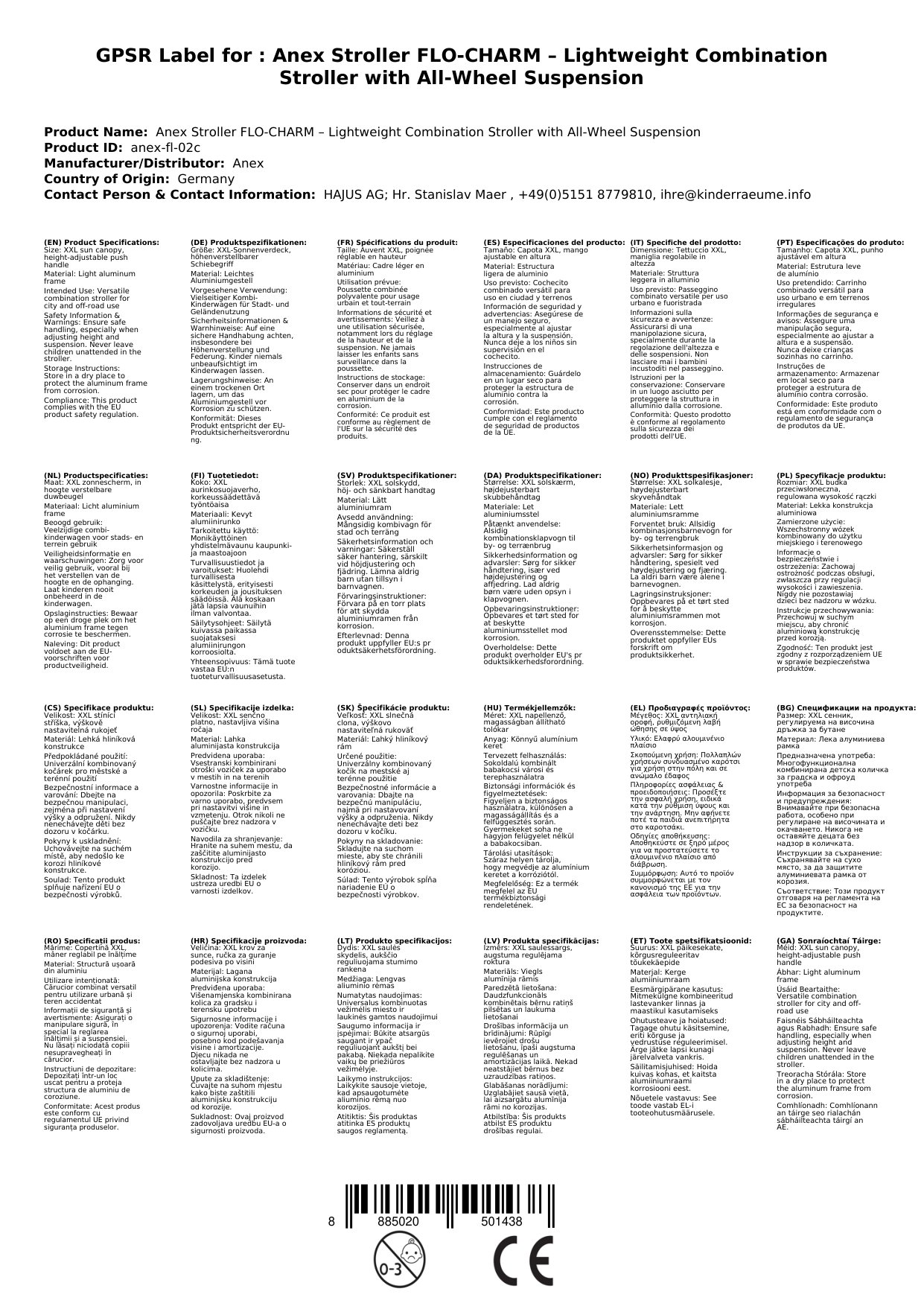Stellen Sie eine Frage, um mehr über das Produkt zu erfahrenAnex Kinderwagen FLO-CHARM, leichter Kombi-Kinderwagen mit Allradfederung, Aluminiumgestell, höhenverstellbarer Schiebegriff, XXL-Sonnenverdeck