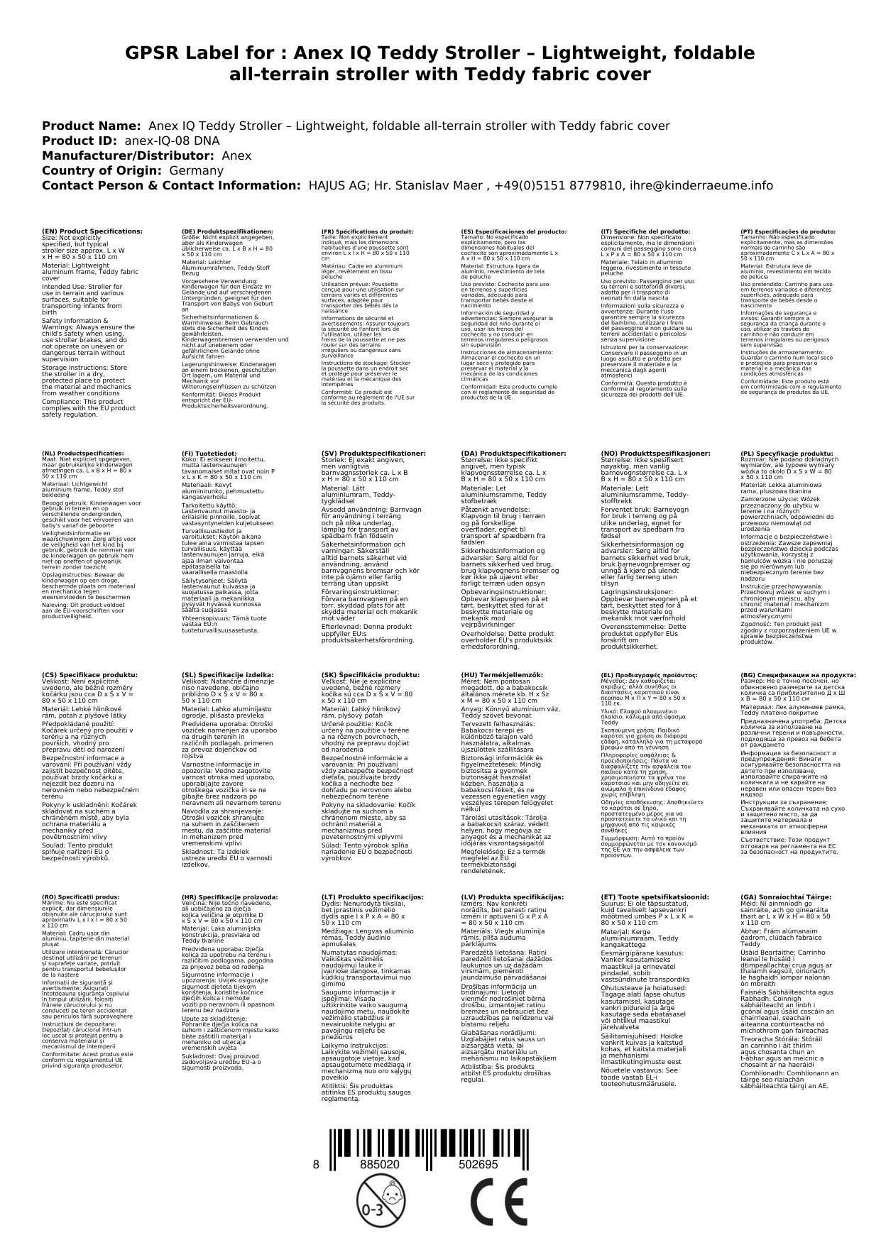 Stellen Sie eine Frage, um mehr über das Produkt zu erfahrenAnex Kinderwagen IQ Teddy, leichter faltbarer All-Terrain Kinderwagen mit Teddy Bezug