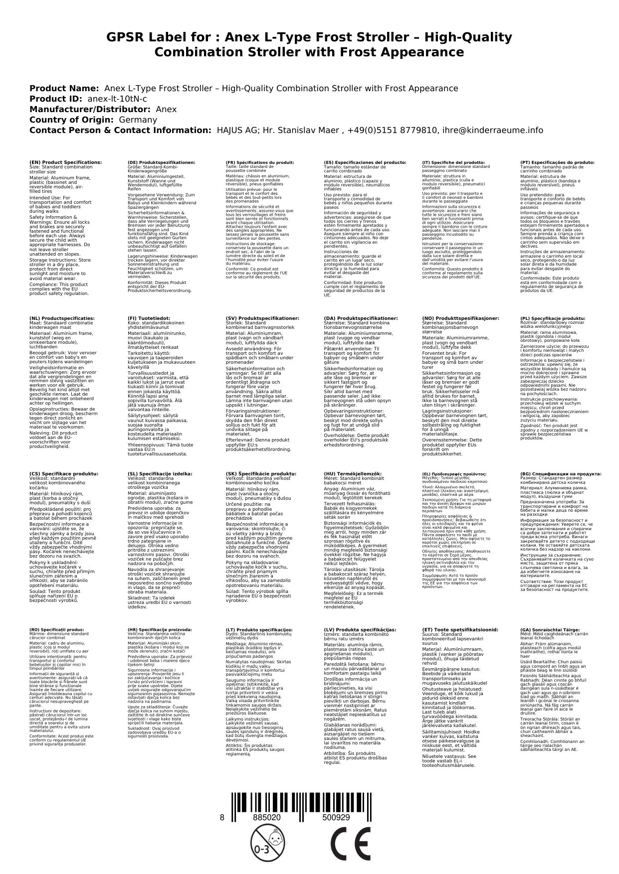 Stellen Sie eine Frage, um mehr über das Produkt zu erfahrenAnex Kinderwagen L-Type Frost, Kombi-Kinderwagen, Kinderwagen mit Wanne, Aluminiumgestell, Frost Design