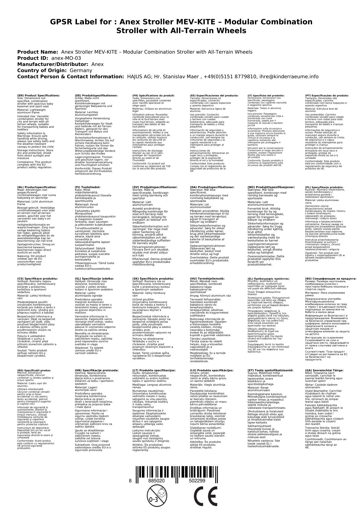 Stellen Sie eine Frage, um mehr über das Produkt zu erfahrenKinderwagen, Kombikinderwagen, Anex MEV-KITE, modularer Kinderwagen, All-Terrain-Räder, leichte Aluminiumgestell, Babywanne, Sportsitz, faltbar