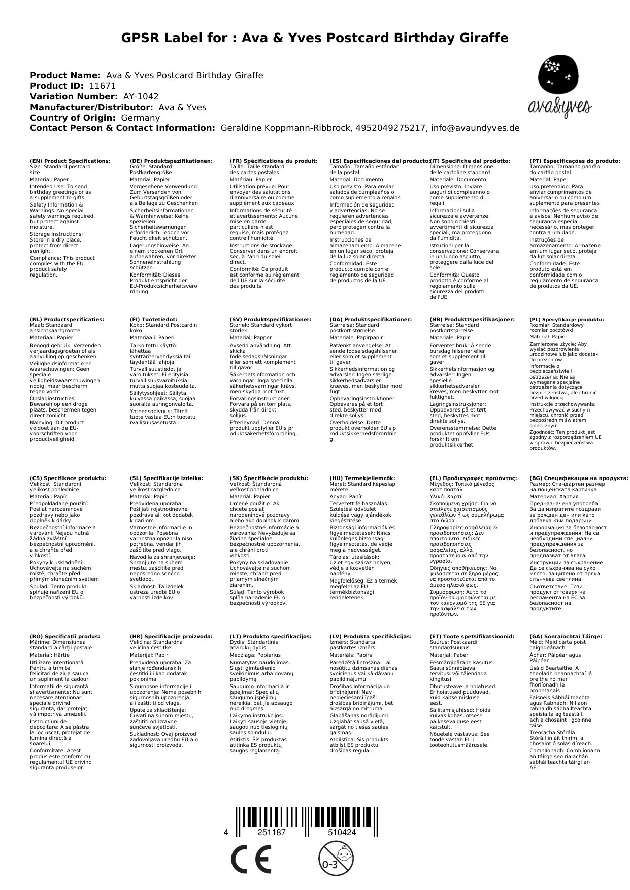 Sollten die Karte zum Zeitpunkt Ihrer Bestellung nicht bei uns lagernd sein, bestellen wir sofort bei Ava & Yves nach. Die aktuelle Lieferzeit sehen Sie weiter oben.
