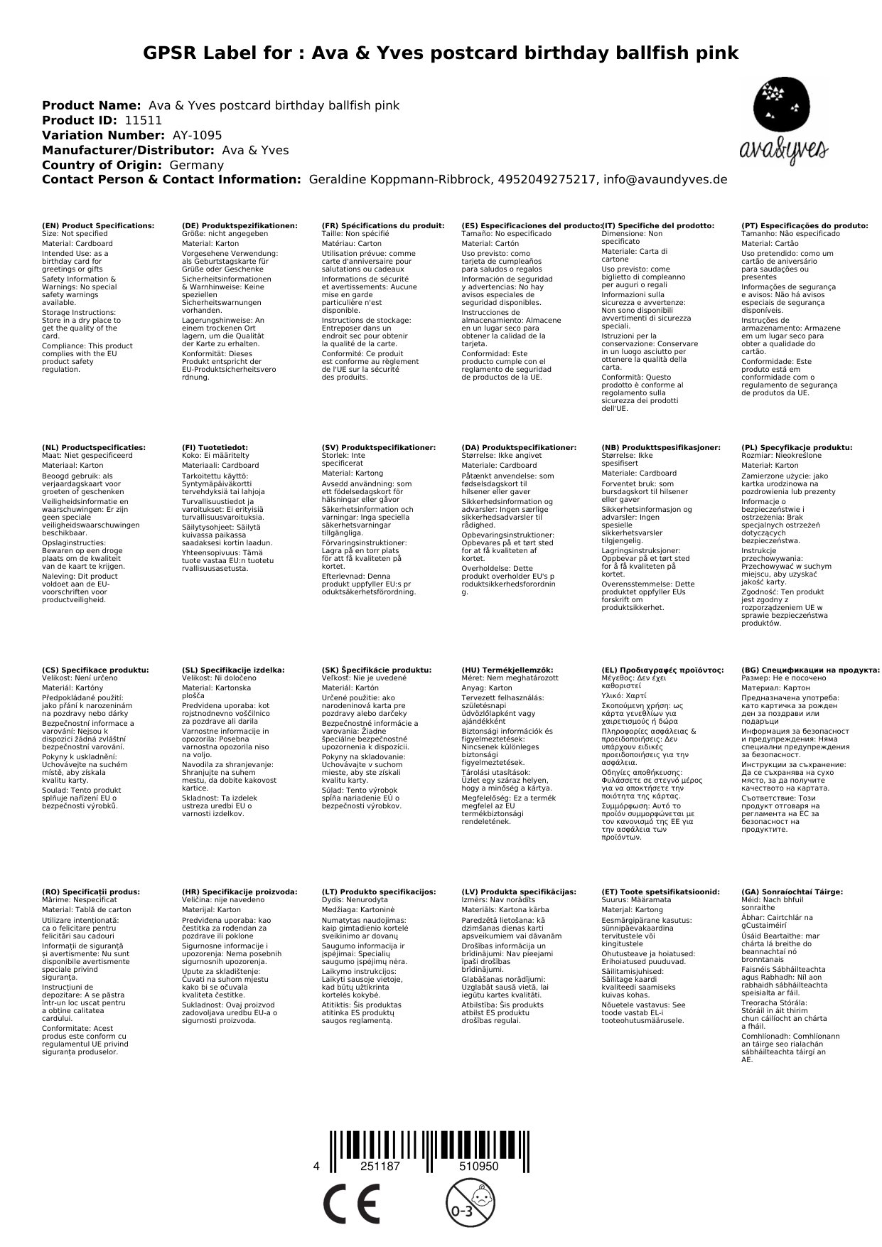 Sollten die Karte zum Zeitpunkt Ihrer Bestellung nicht bei uns lagernd sein, bestellen wir sofort bei Ava & Yves nach. Die aktuelle Lieferzeit sehen Sie weiter oben.