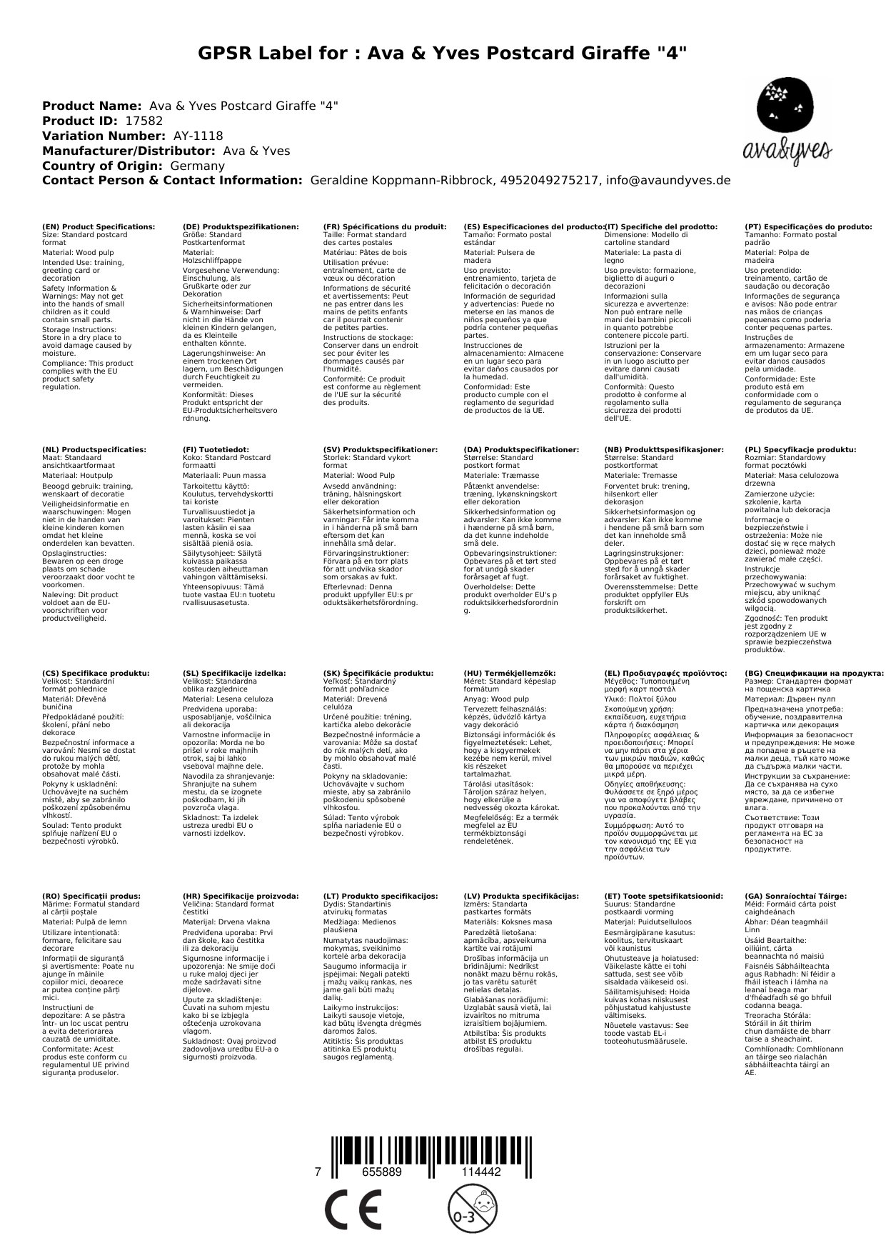 Ava & Yves Postkarte Giraffe "4"