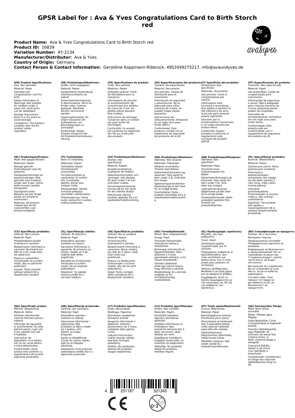 Ava & Yves Glückwunsch Karte zur Geburt Storch rot