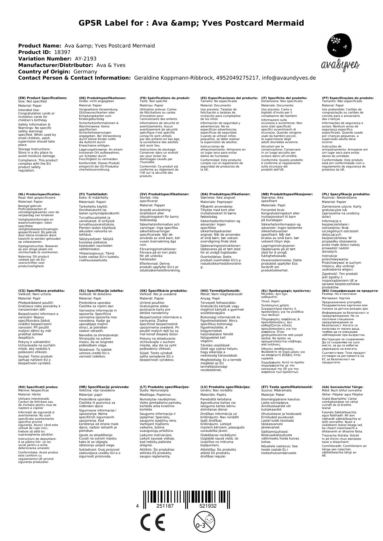Sollten die Karten zum Zeitpunkt Ihrer Bestellung nicht bei uns lagernd sein, bestellen wir sofort bei Ava & Yves nach. Die aktuelle Lieferzeit sehen Sie weiter oben.