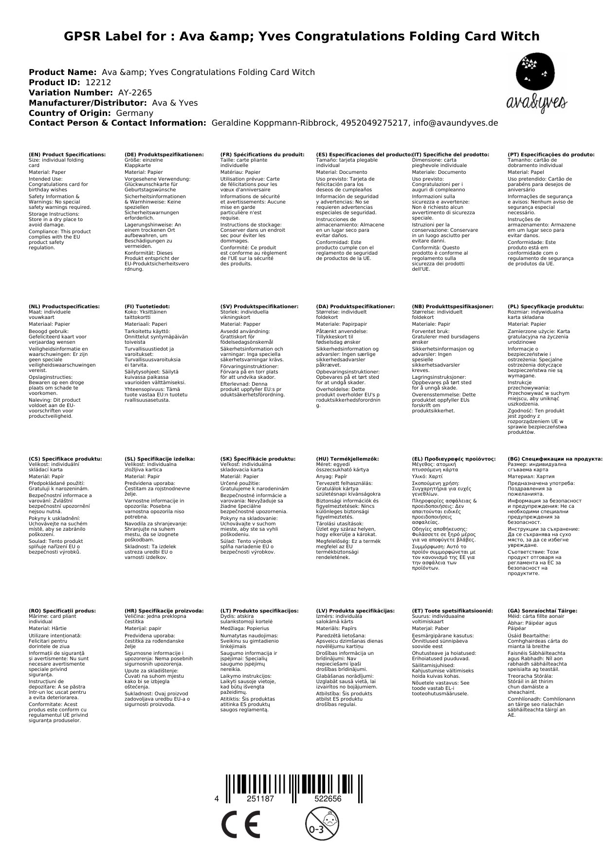 Sollte die Karte zum Zeitpunkt Ihrer Bestellung nicht bei uns lagernd sein, bestellen wir sofort bei Ava & Yves nach. Die aktuelle Lieferzeit sehen Sie weiter oben.