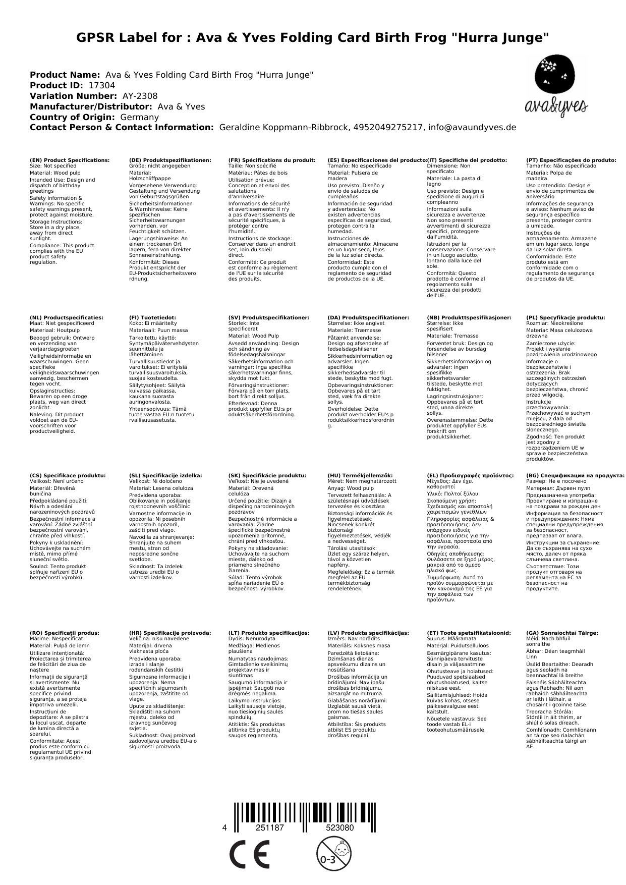 Sollte die Karte zum Zeitpunkt Ihrer Bestellung nicht bei uns lagern, bestellen wir sie sofort bei Ava & Yves nach. Die aktuelle Lieferzeit sehen Sie weiter oben.