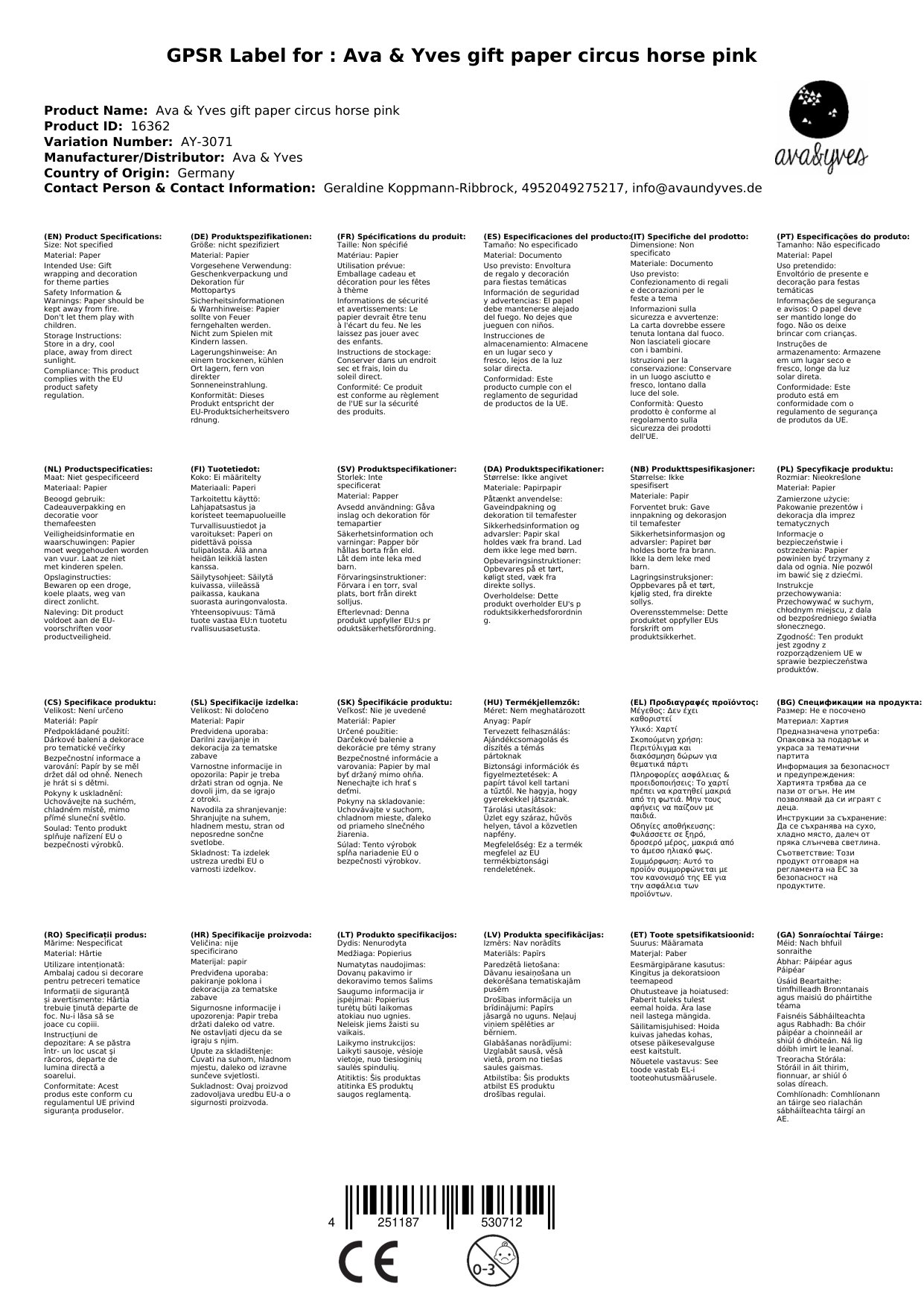 Ava & Yves Geschenkpapier Zirkuspferd rosa