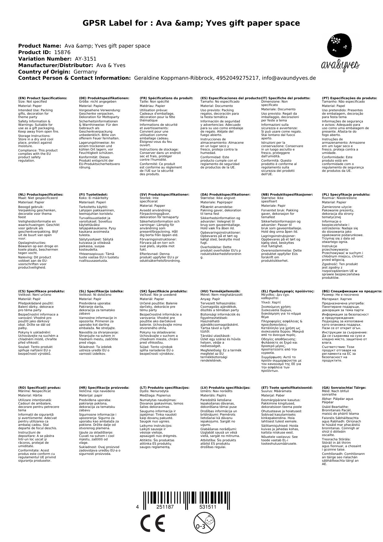 Sollte das Papier zum Zeitpunkt Ihrer Bestellung nicht bei uns lagernd sein, bestellen wir sofort bei Ava & Yves nach. Die aktuelle Lieferzeit sehen Sie weiter oben.