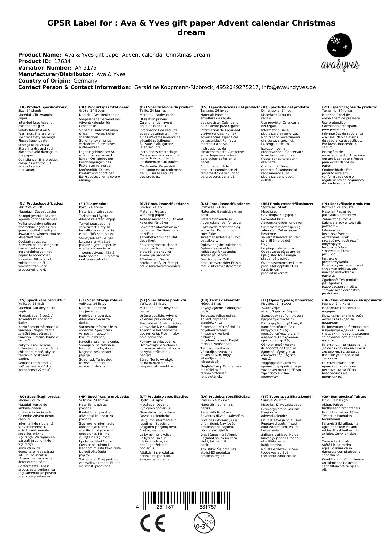 Sollte der Adventskalender zum Zeitpunkt Ihrer Bestellung nicht bei uns lagern, bestellen wir ihn sofort bei Ava & Yves nach. Die aktuelle Lieferzeit sehen Sie weiter oben.