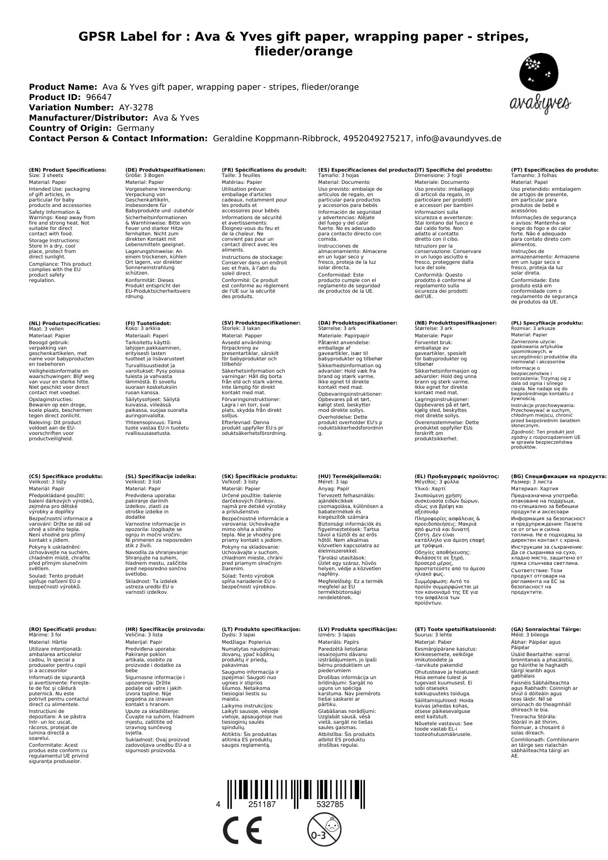 Stellen Sie eine Frage, um mehr über das Produkt zu erfahrenAva & Yves Geschenkpapier, Einschlagpapier - Streifen, flieder/orange