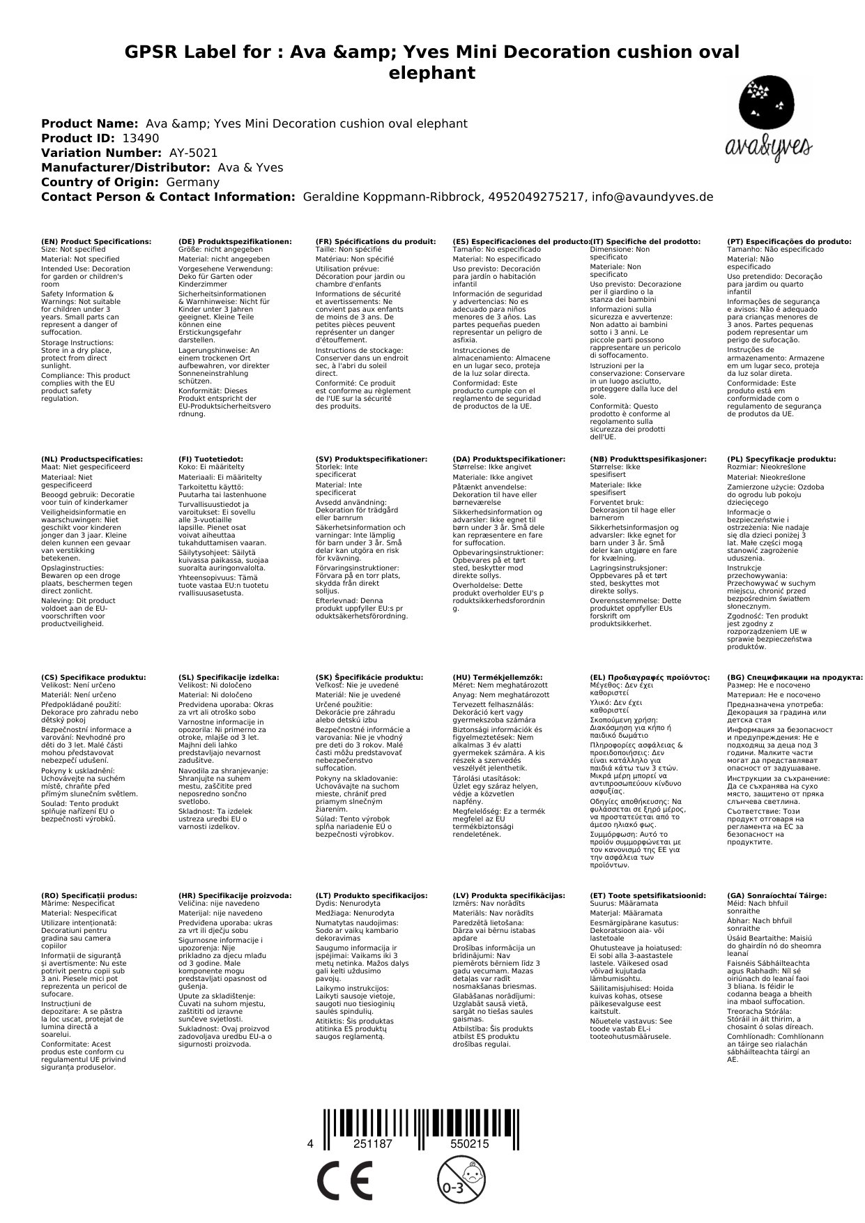 Ava & Yves Mini Dekokissen oval Elefant