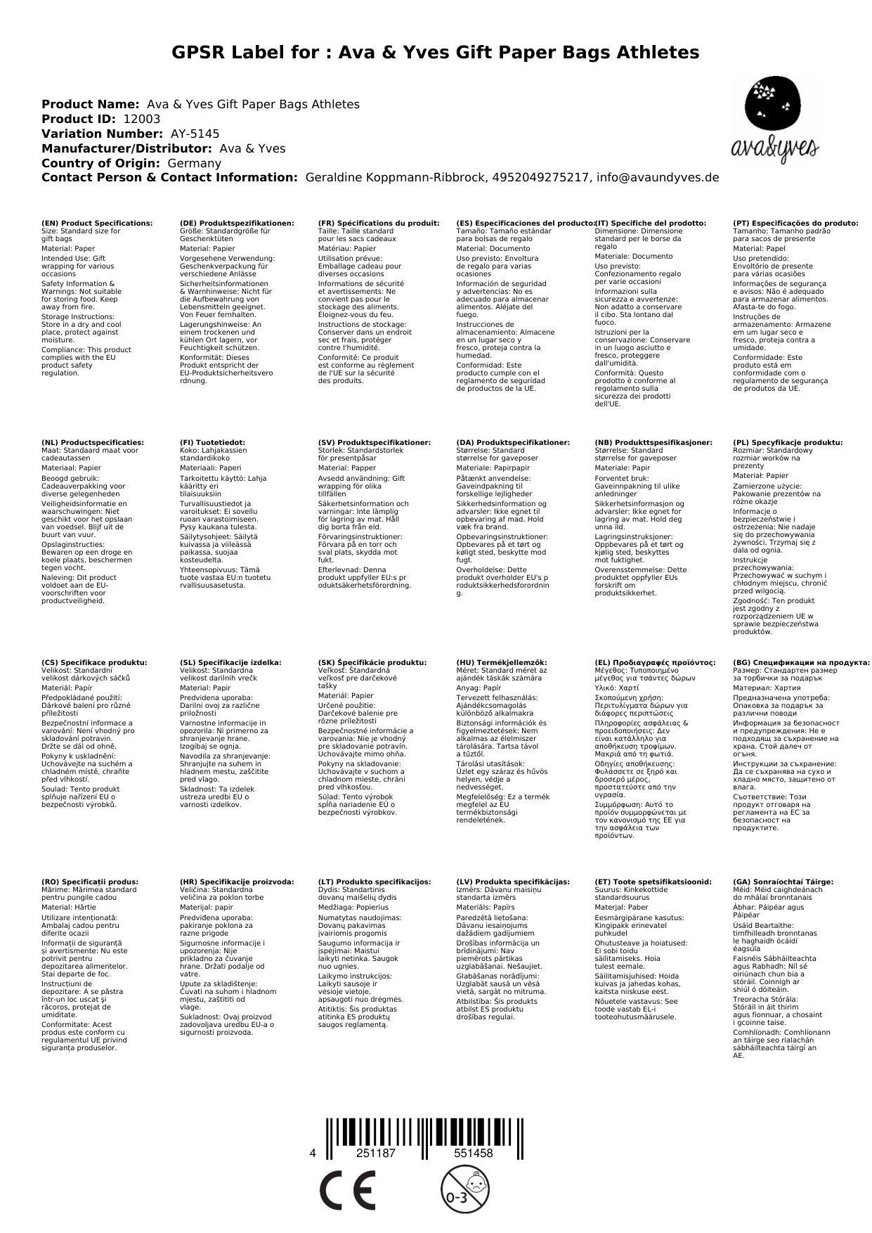 Ava & Yves Geschenk Papiertüten Athleten