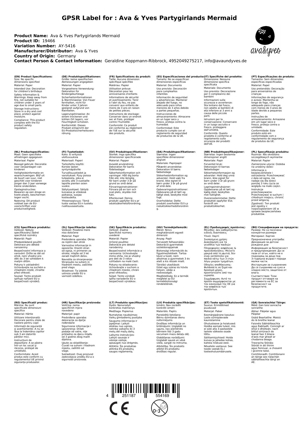 Ava & Yves Partygirlanden Meerjungfrau
