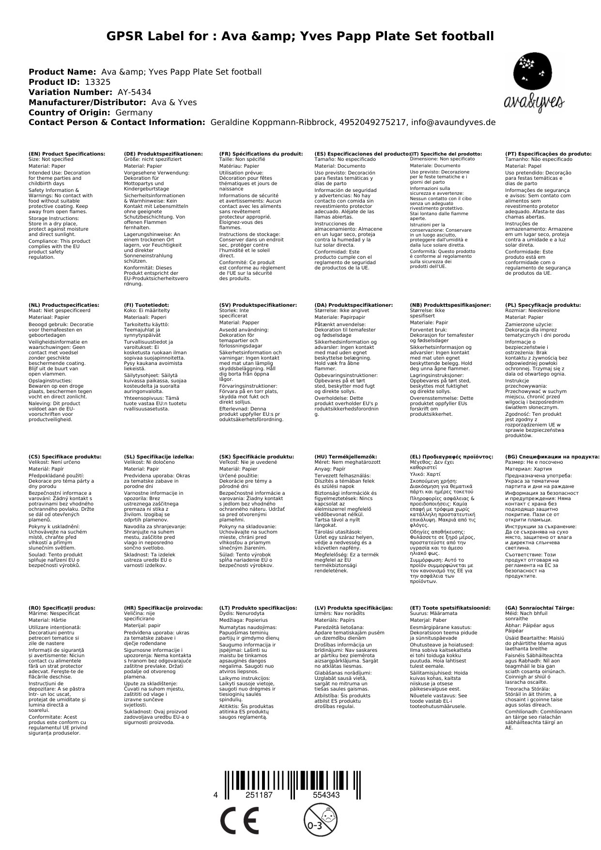 Ava & Yves Pappteller Set Fussball