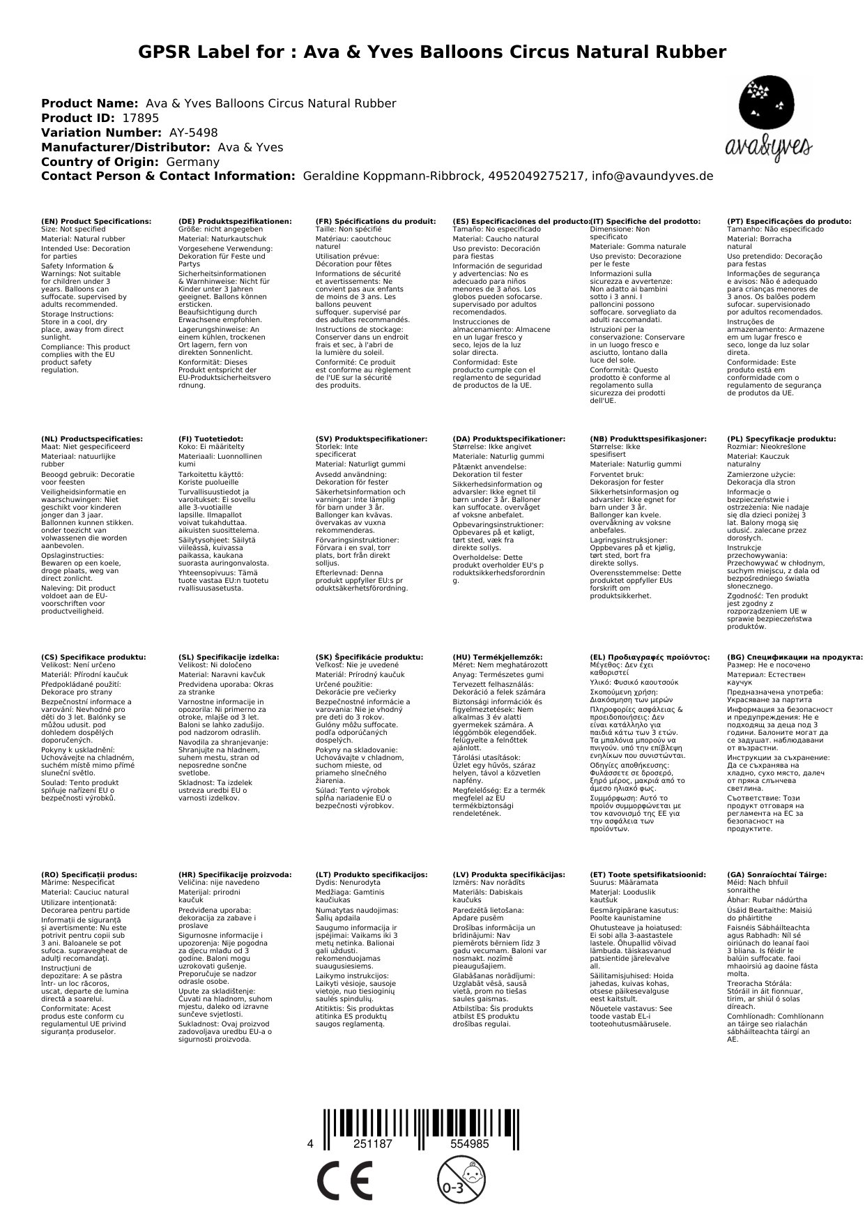 Ava & Yves Luftballons Zirkus Naturkautschuk
