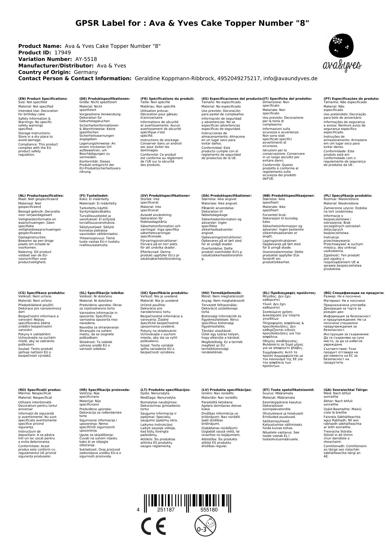 Sollten die Cake-Topper zum Zeitpunkt Ihrer Bestellung nicht bei uns lagern, bestellen wir sie sofort bei Ava & Yves nach. Die aktuelle Lieferzeit sehen Sie weiter oben.