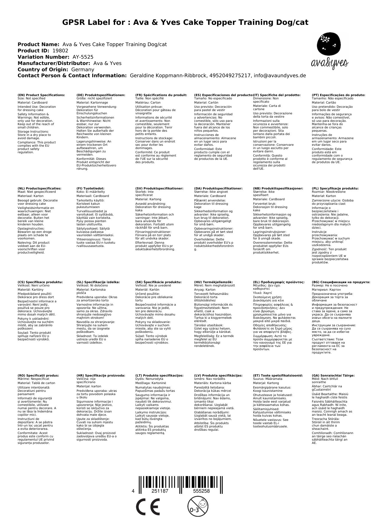 Sollten die Cake-Topper zum Zeitpunkt Ihrer Bestellung nicht bei uns lagern, bestellen wir sie sofort bei Ava & Yves nach. Die aktuelle Lieferzeit sehen Sie weiter oben.