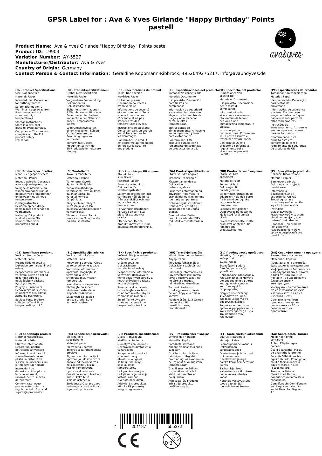 Ava & Yves Girlande "Happy Birthday" Punkte pastell