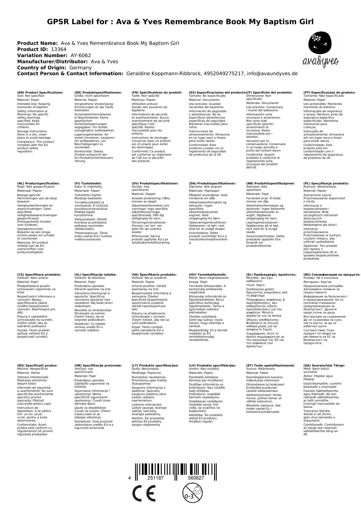 Sollte das Erinnerungsbuch zum Zeitpunkt Ihrer Bestellung nicht bei uns lagernd sein, bestellen wir sofort bei Ava & Yves nach. Die aktuelle Lieferzeit sehen Sie weiter oben.