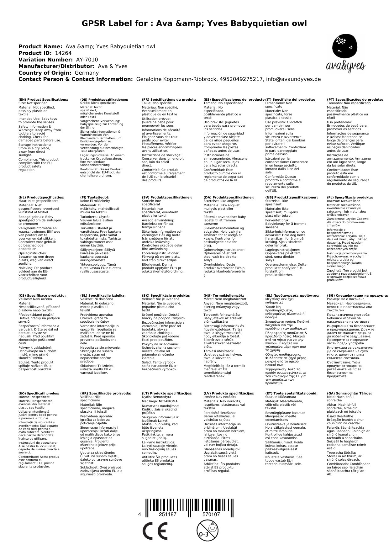Ava & Yves Babyquietscher Eule