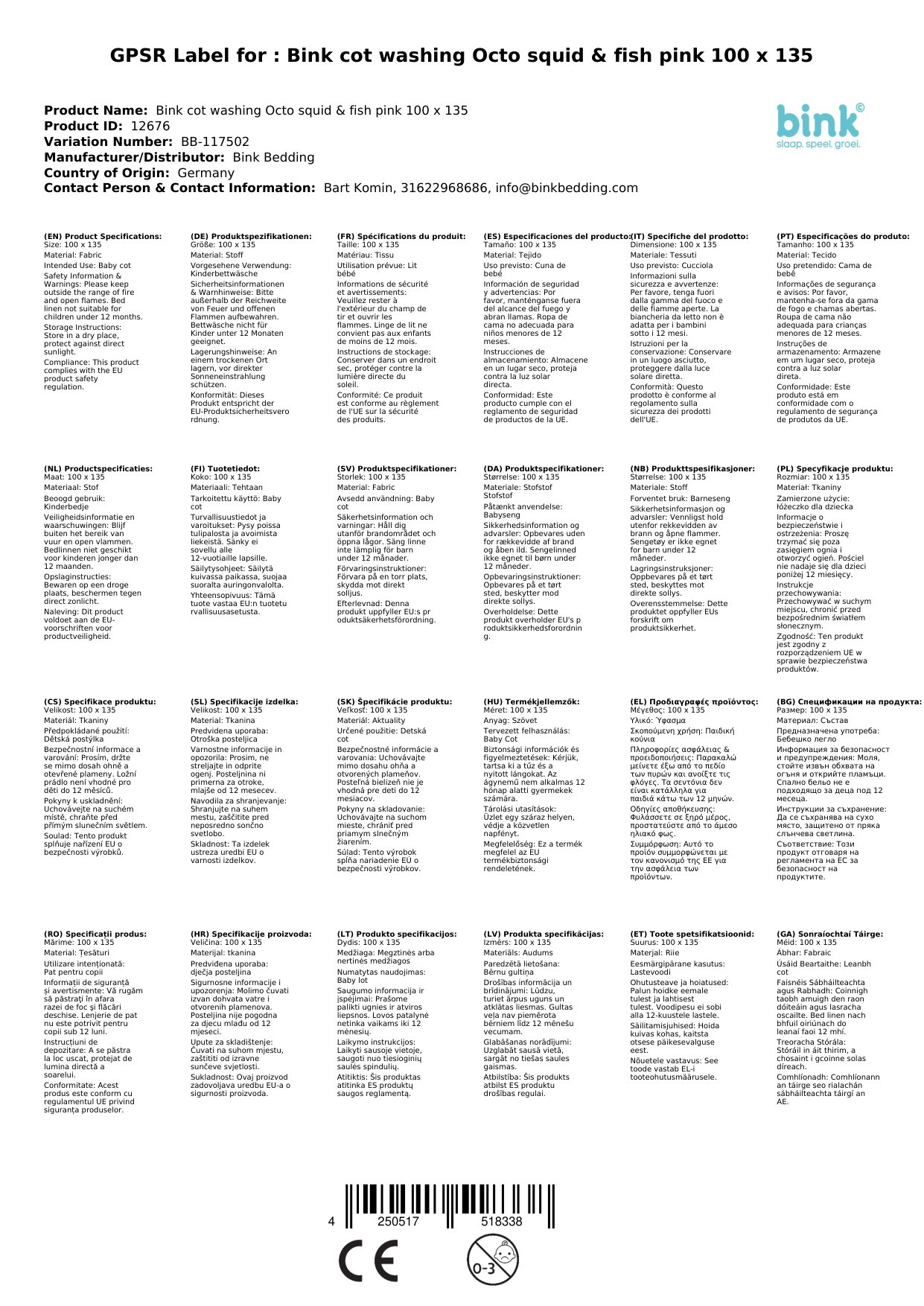 Stellen Sie eine Frage, um mehr über das Produkt zu erfahrenBink Kinderbettwäsche Octo Tintenfisch & Fische rosa rot 100 x 135