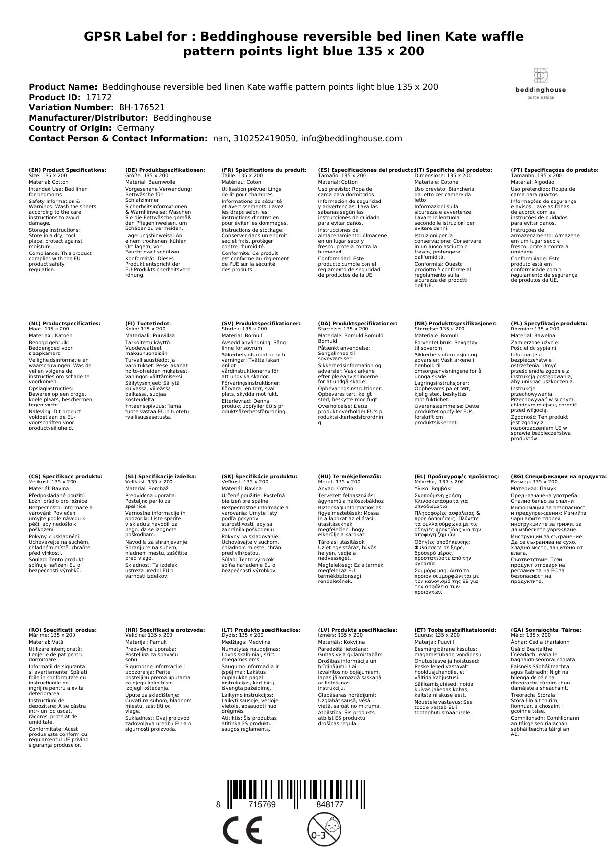 Beddinghouse Wendebettwäsche Kate Waffelmuster Punkte hellblau 135 x 200