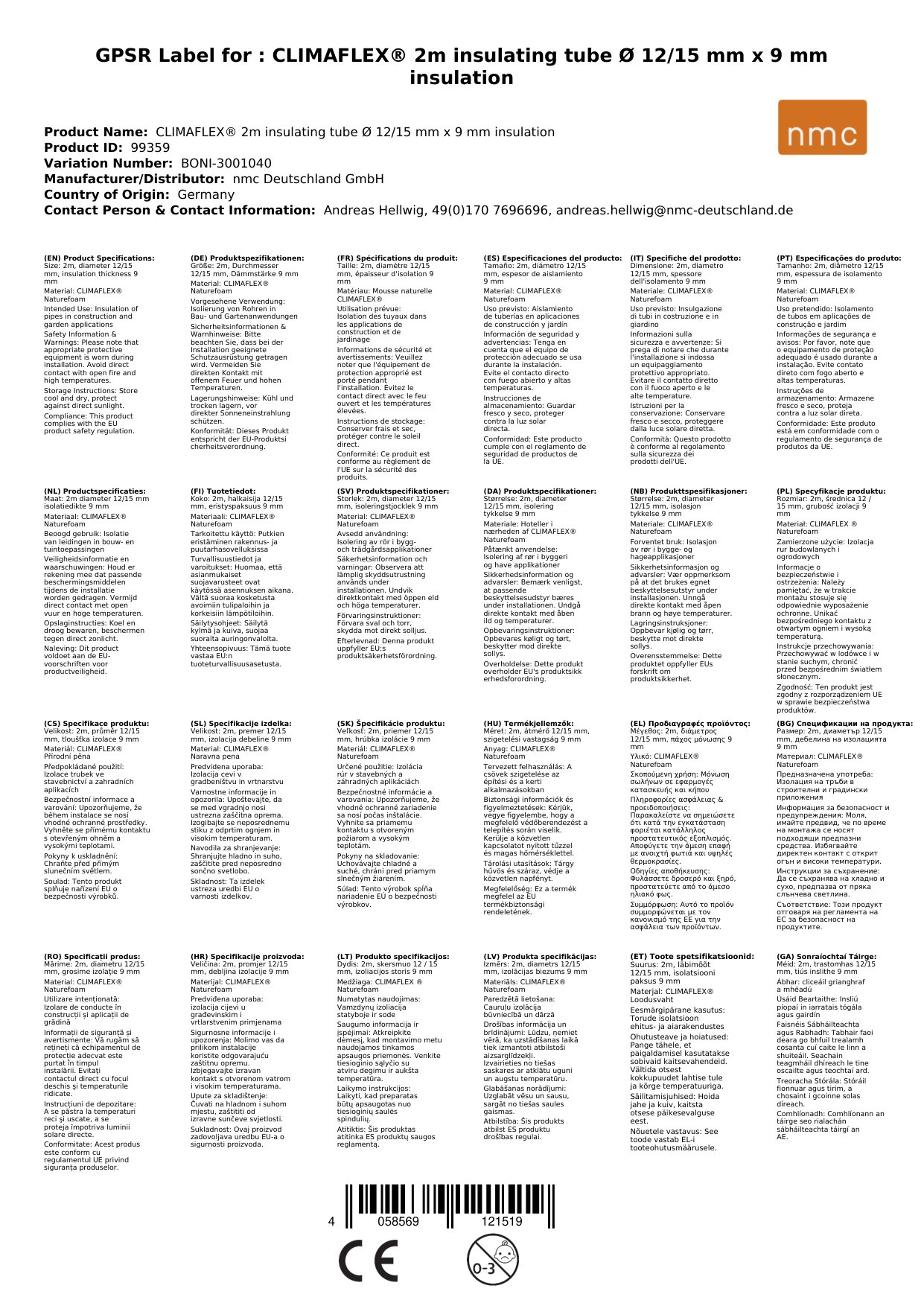| Material | Geschäumtes Polyethylen (NMC Naturefoam®) |