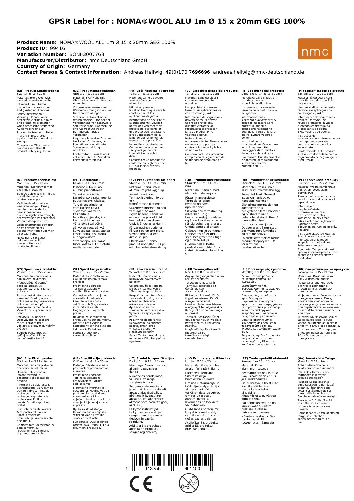 | Material | Steinwolle mit Aluminiumbeschichtung |