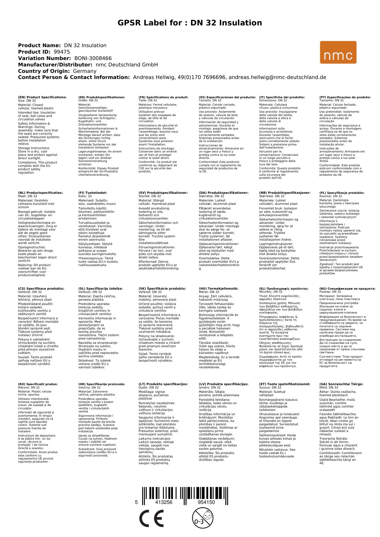 | Material Isolierung | Geschlossenzelliger Polyethylenschaum (PE) |