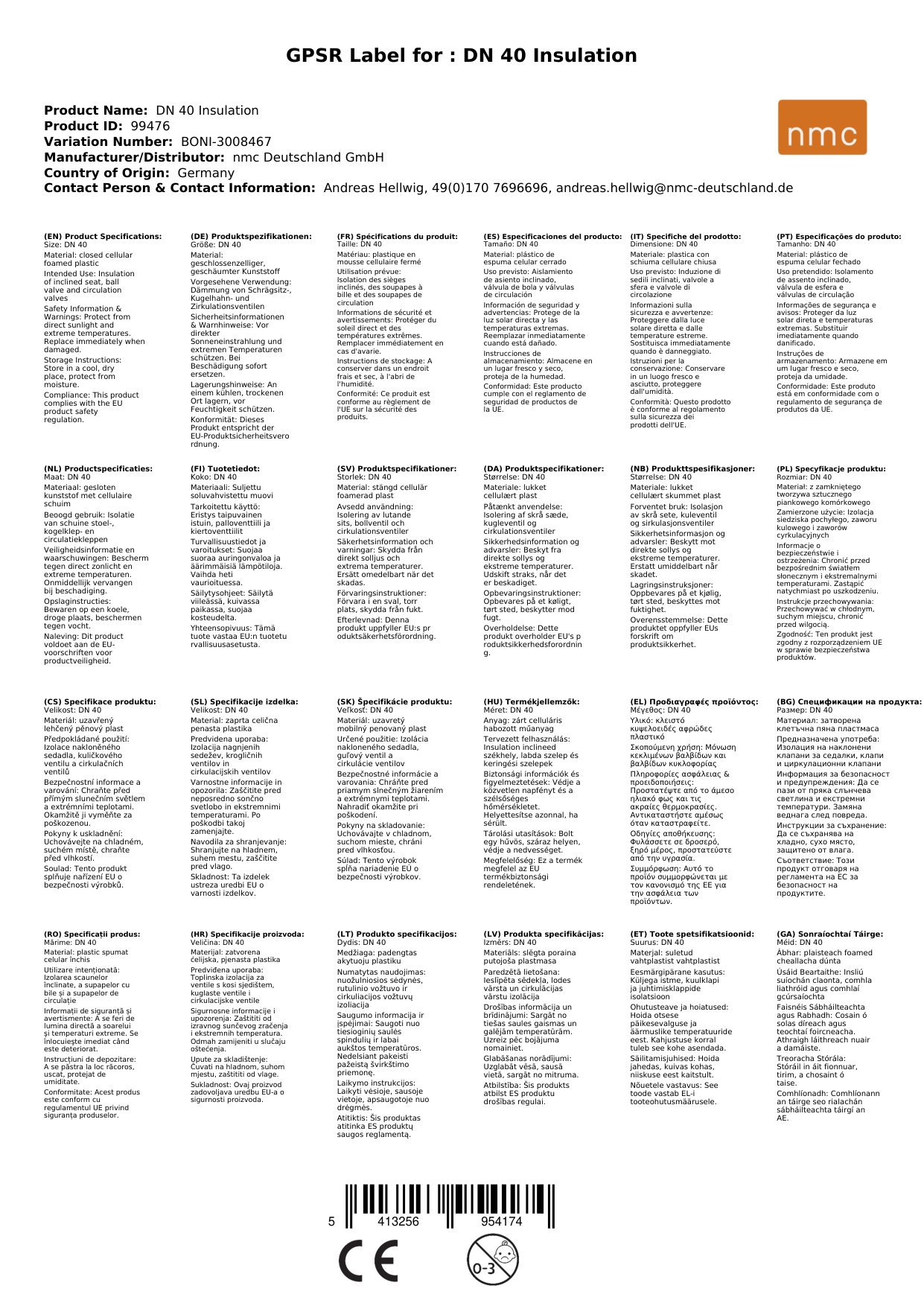 | Wärmeleitfähigkeit | 0,037 W/mK bei 0 °C / 0,043 W/mK bei 40 °C / 0,046 W/mK bei 90 °C (EN ISO 8497) |