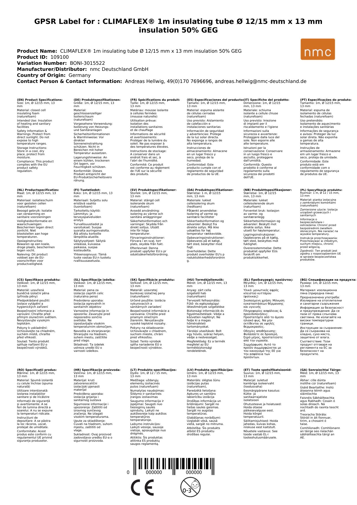 Stellen Sie eine Frage, um mehr über das Produkt zu erfahrenCLIMAFLEX® naturefoam 1m Isolierschlauch Ø 12/15 mm x 13 mm Dämmung 50% GEG
