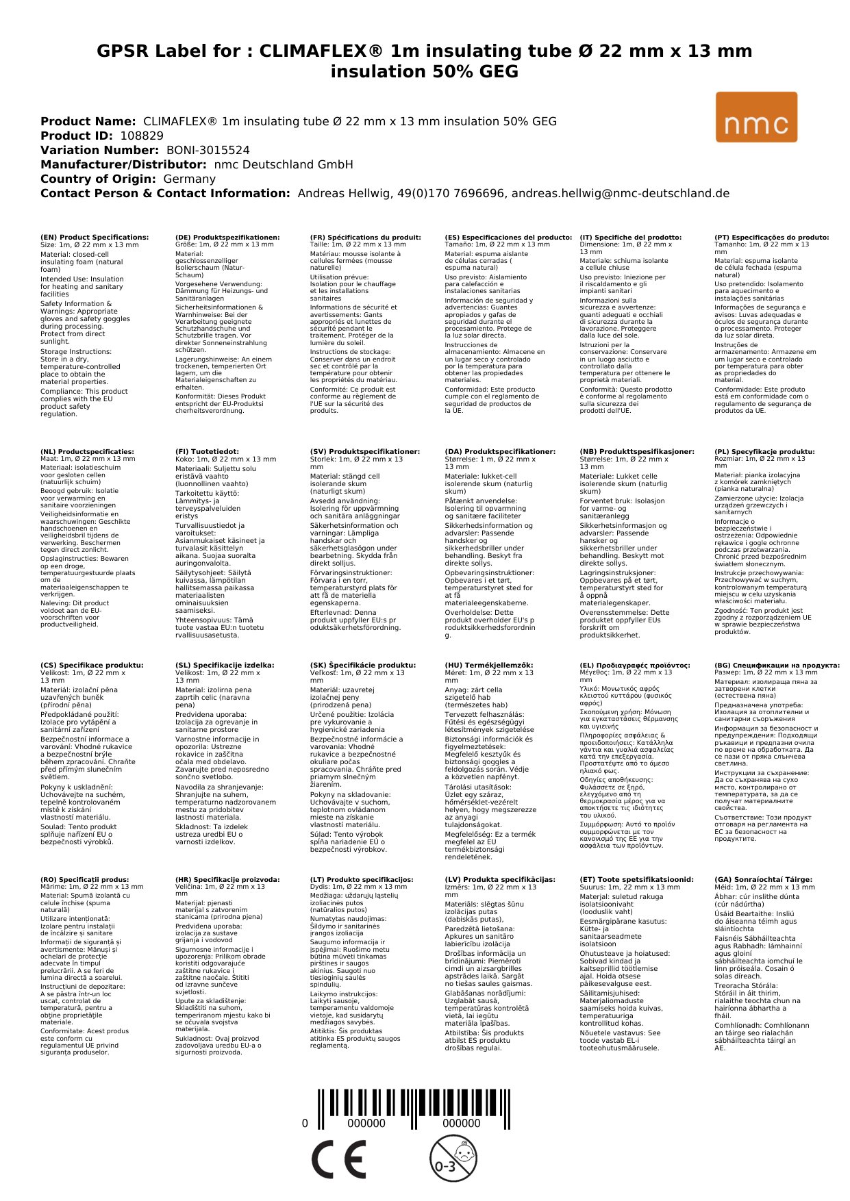 Stellen Sie eine Frage, um mehr über das Produkt zu erfahrenCLIMAFLEX® naturefoam 1m Isolierschlauch Ø 22 mm x 13 mm Dämmung 50% GEG