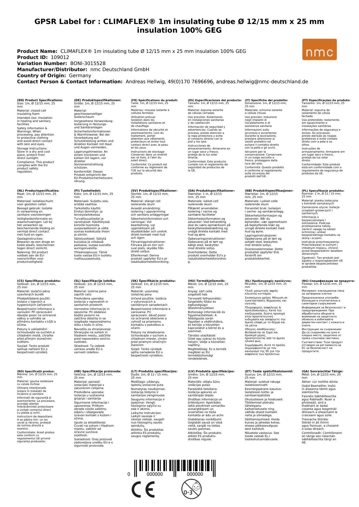 Stellen Sie eine Frage, um mehr über das Produkt zu erfahrenCLIMAFLEX® naturefoam 1m Isolierschlauch Ø 12/15 mm x 25 mm Dämmung 100% GEG