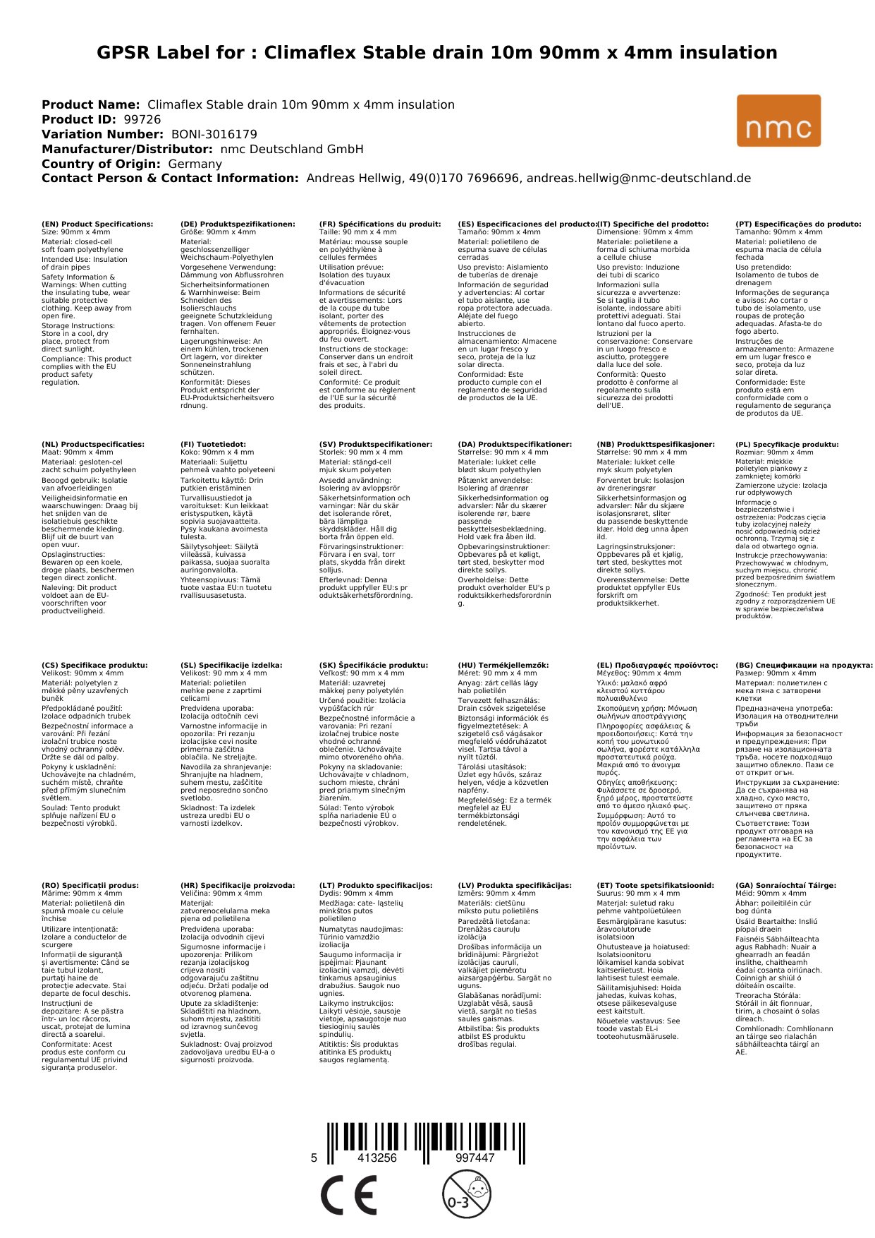 - Abflussrohr Dämmung 10 m – 90 mm Durchmesser, 4 mm Dicke