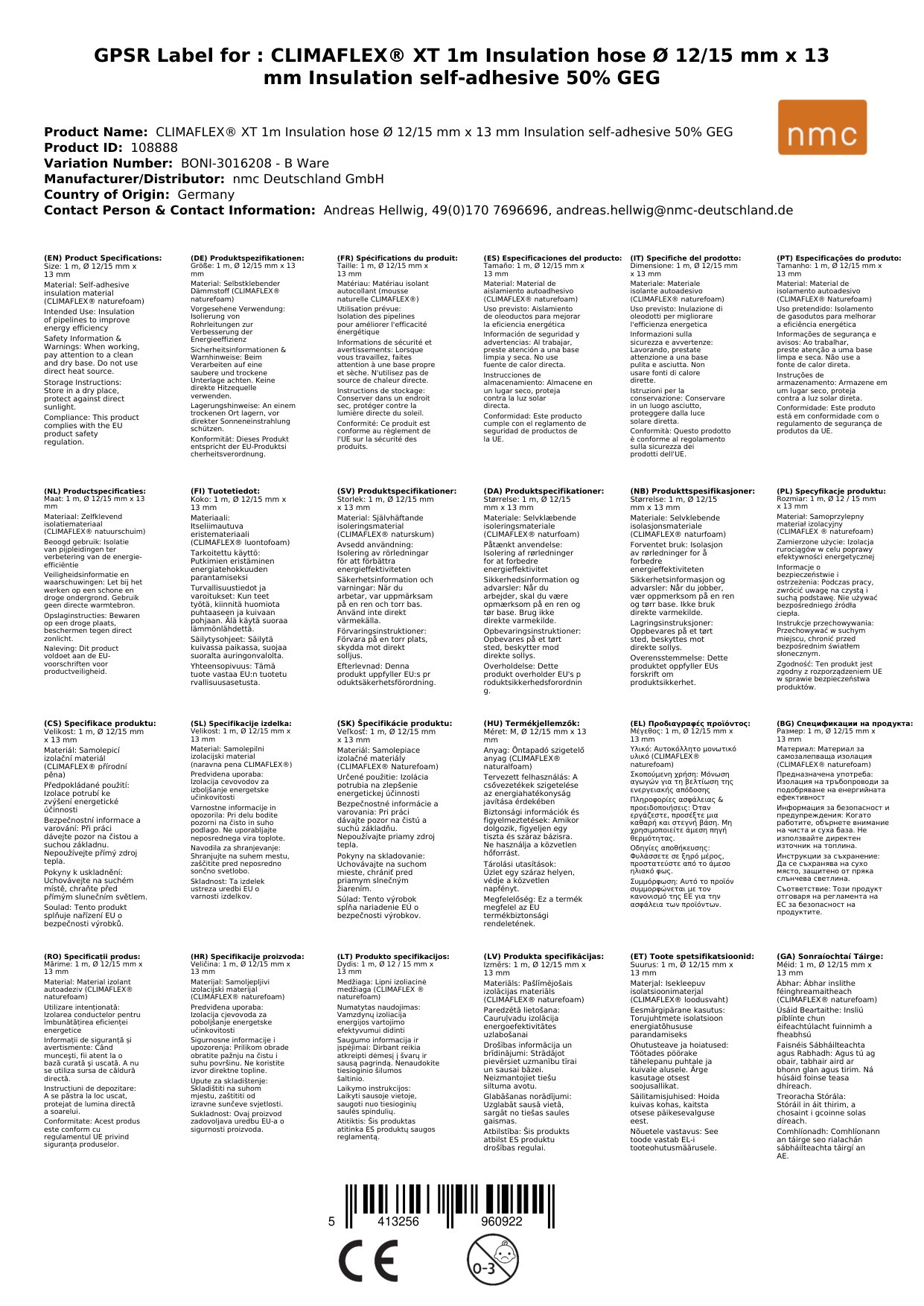 CLIMAFLEX® XT ist ein flexibler Dämmstoff aus geschäumtem, geschlossenzelligem Polyethylen aus NMC Naturefoam® mit einem Anteil von mindestens 50 % nachwachsenden Rohstoffen, ausgestattet mit beidseitig selbstklebendem Verschlusssystem.