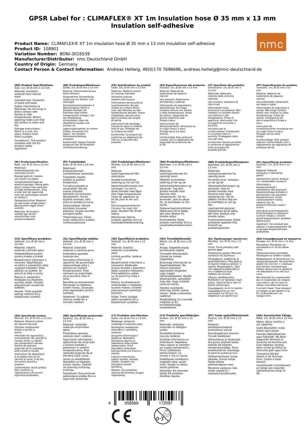 CLIMAFLEX® XT ist ein flexibler Dämmstoff aus geschäumtem, geschlossenzelligem Polyethylen aus NMC Naturefoam® mit einem Anteil von mindestens 50 % nachwachsenden Rohstoffen, ausgestattet mit beidseitig selbstklebendem Verschlusssystem.