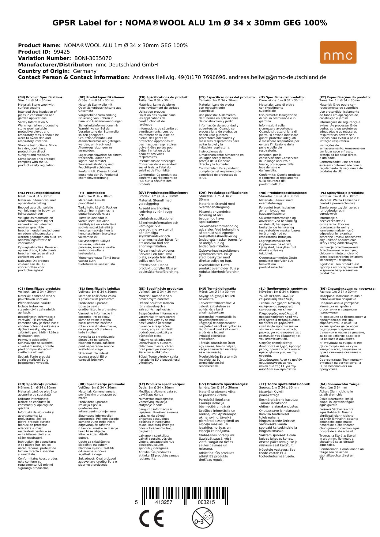| Material | Steinwolle mit Aluminiumbeschichtung |