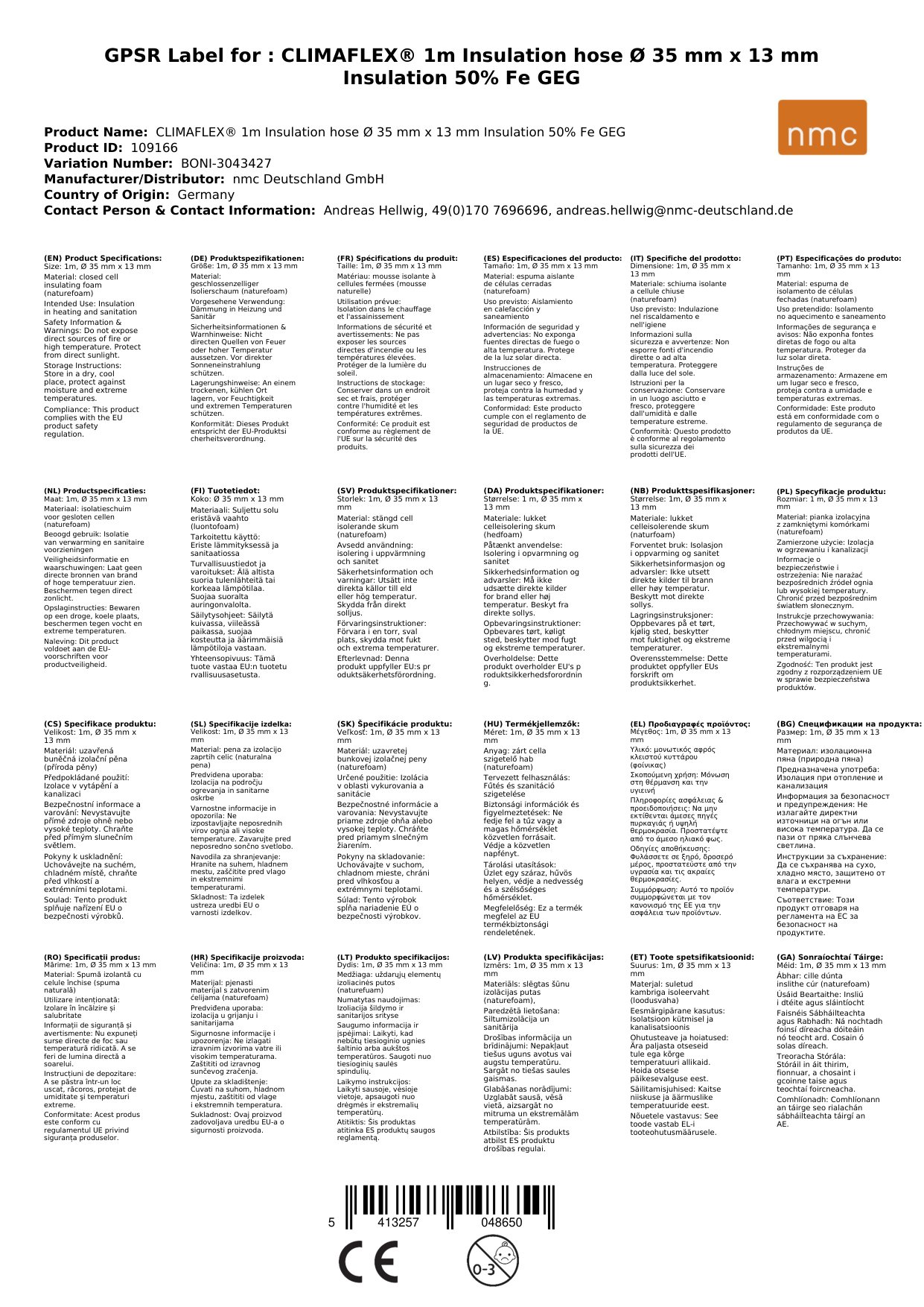 Stellen Sie eine Frage, um mehr über das Produkt zu erfahrenCLIMAFLEX® naturefoam 1m Isolierschlauch Ø 35 mm x 13 mm Dämmung 50% Fe GEG