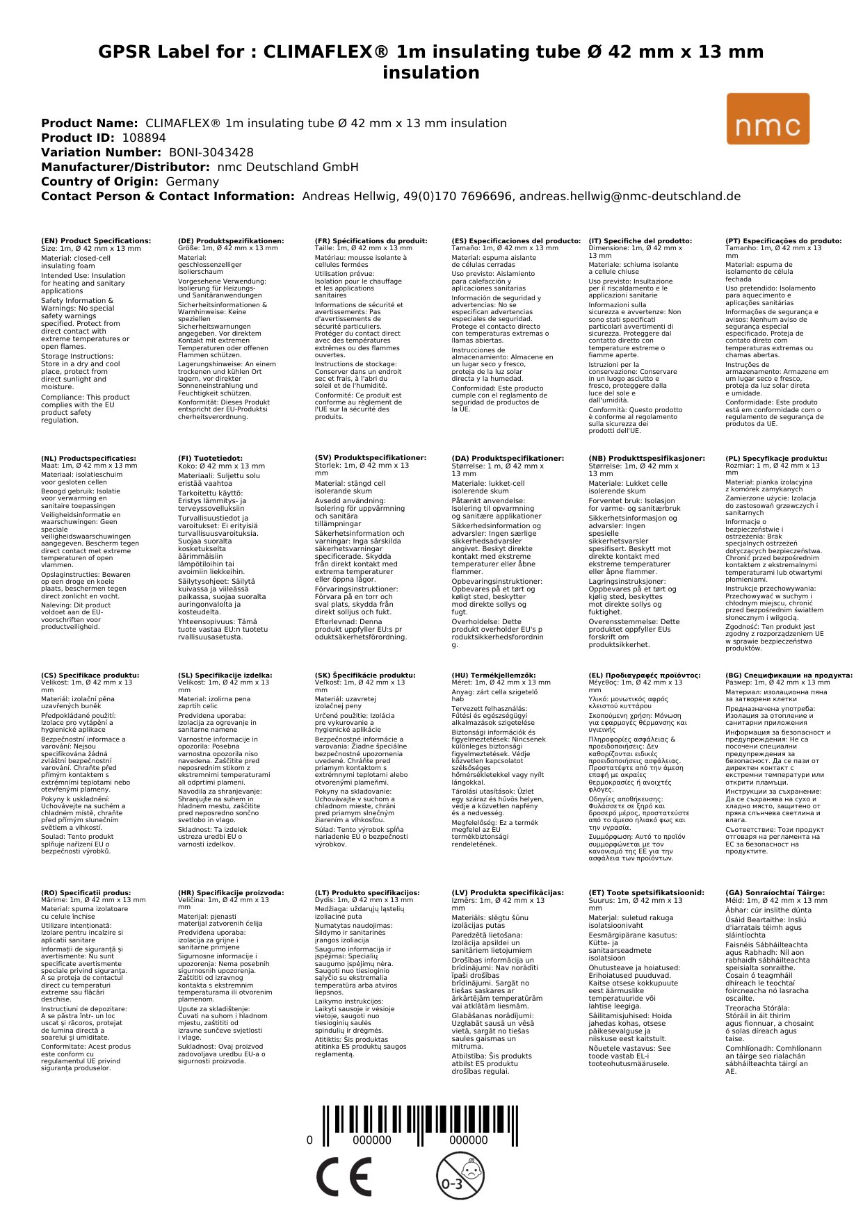 Stellen Sie eine Frage, um mehr über das Produkt zu erfahrenCLIMAFLEX® naturefoam 1m Isolierschlauch Ø 42 mm x 13 mm Dämmung