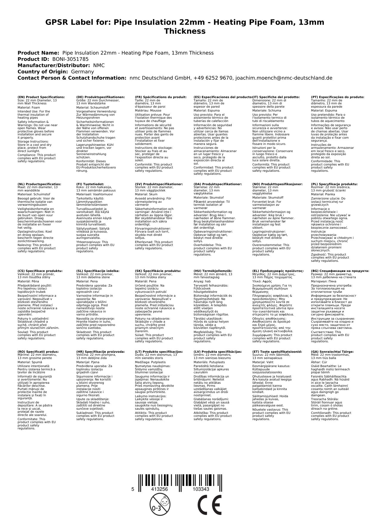 | Isolierstärke | 13 mm |