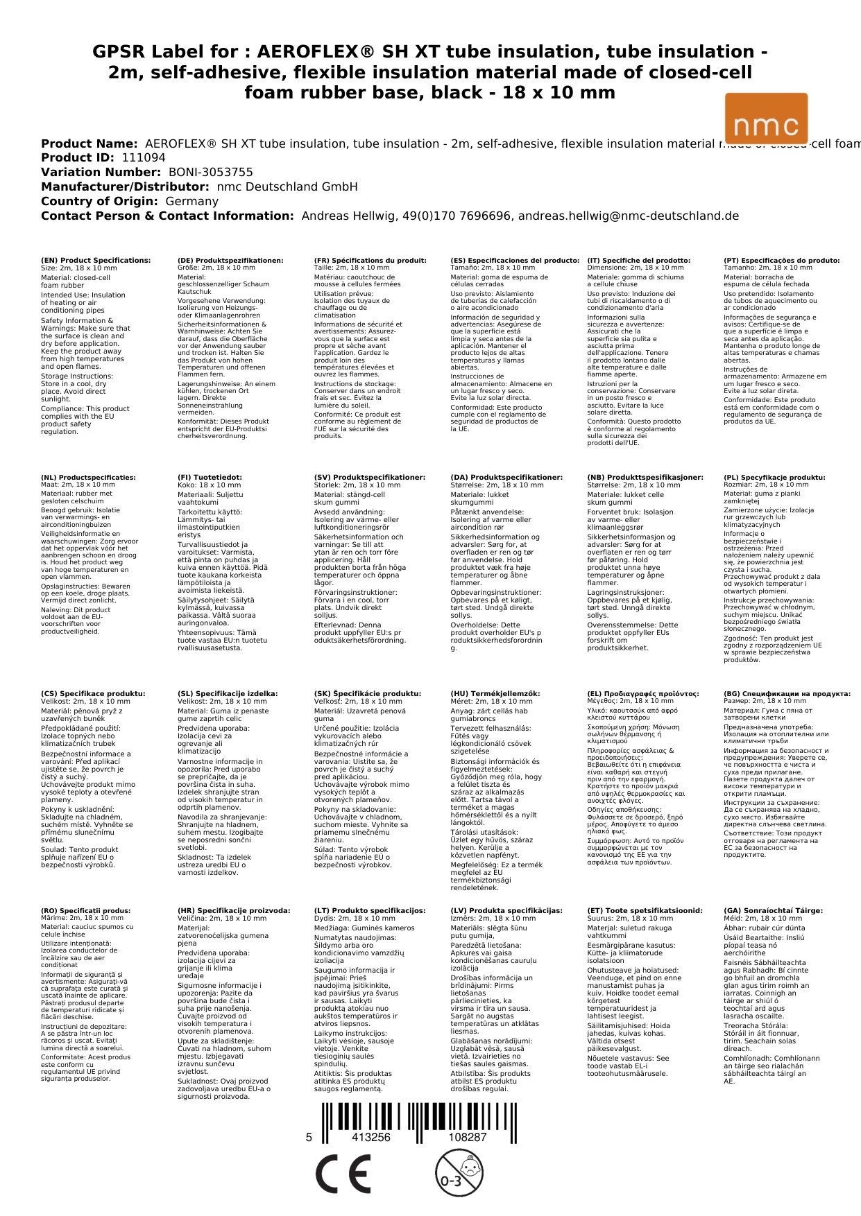 Stellen Sie eine Frage, um mehr über das Produkt zu erfahrenAEROFLEX® SH XT Rohrisolierung, Rohrdämmung - 2m, Selbstklebend, Flexibler Dämmstoff aus geschlossenzelligem Schaum Kautschukbasis, Schwarz