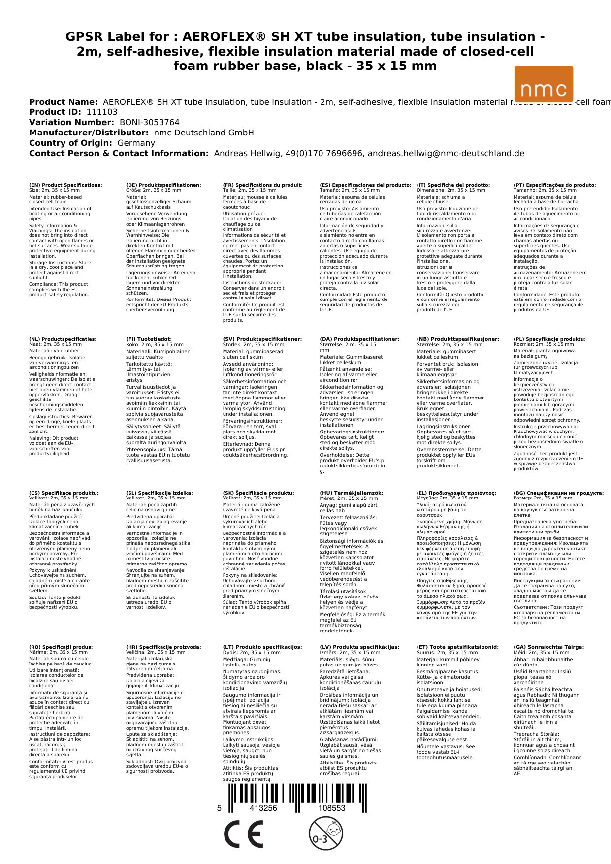 Stellen Sie eine Frage, um mehr über das Produkt zu erfahrenPipe Insulation, Self Adhesive, Flexible Foam, Rubber, 2m, 35 x 15 mm