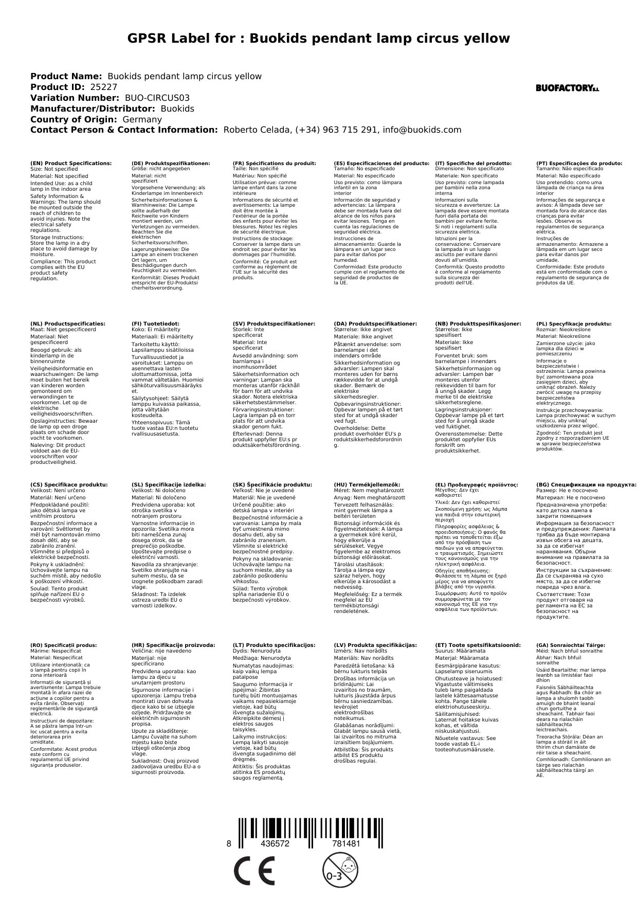 Buokids Pendellampe Zirkus gelb