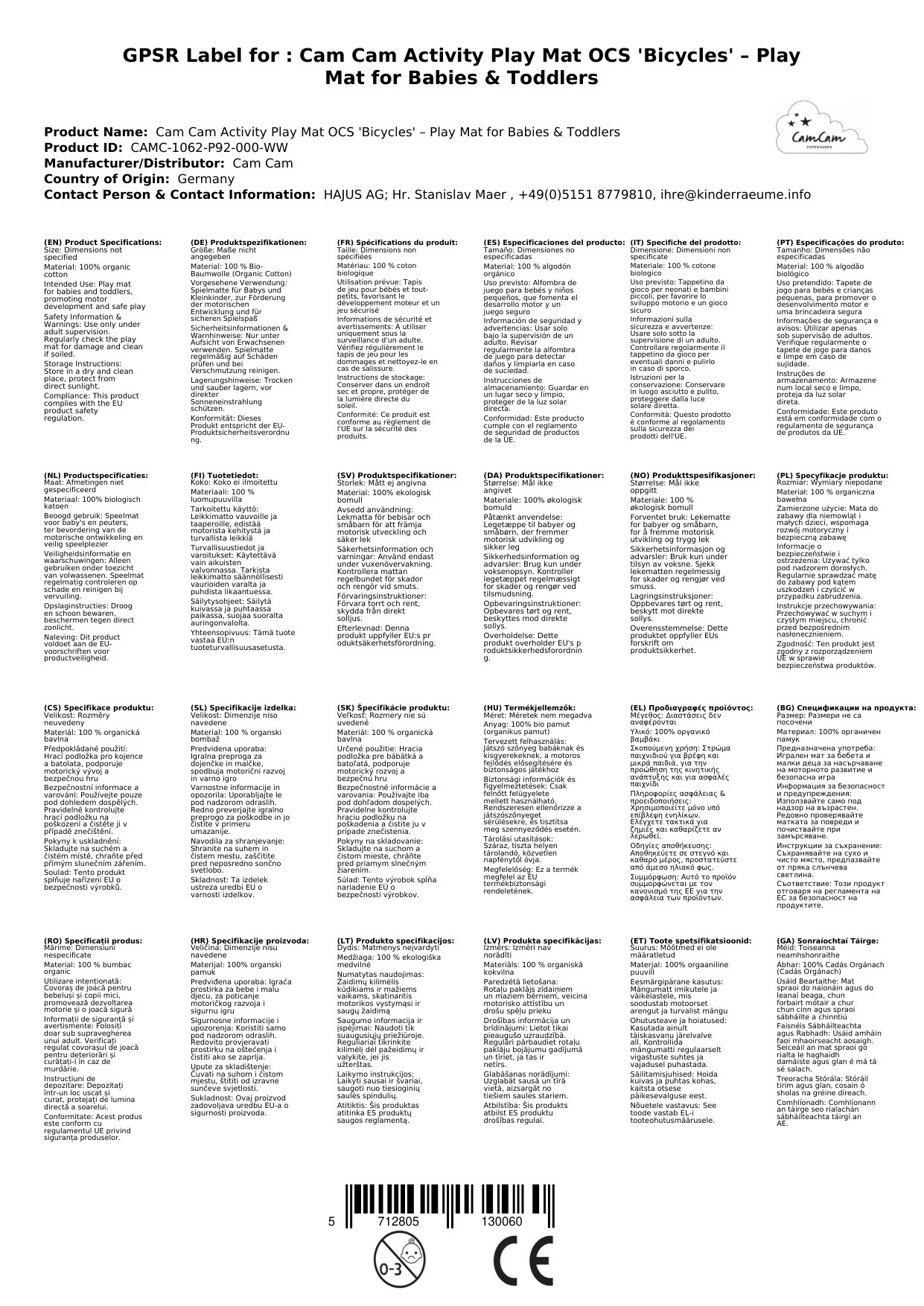 Wir legen größten Wert auf Qualität und Sicherheit für Ihr Kind. Bei uns erhalten Sie nicht nur die Cam Cam Activity-Spielmatte ‚Fahrräder‘ aus zertifizierter Bio-Baumwolle, sondern auch: