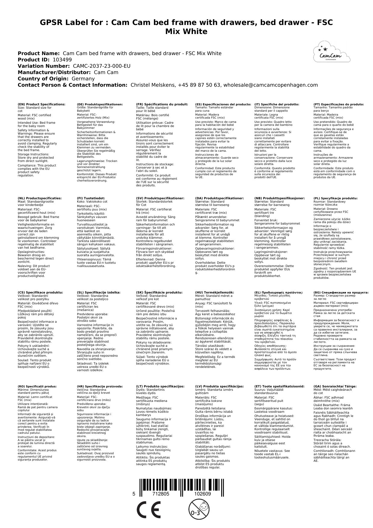 Das Cam Cam Bettgestell mit Schubladen ist die ideale Lösung für alle Eltern, die nach einem funktionellen und zugleich eleganten Möbelstück für das Babyzimmer suchen. Es ist in Weiß erhältlich und besteht aus FSC-zertifiziertem Holz in Kombination mit recycelten Materialien und/oder anderen kontrollierten Quellen.